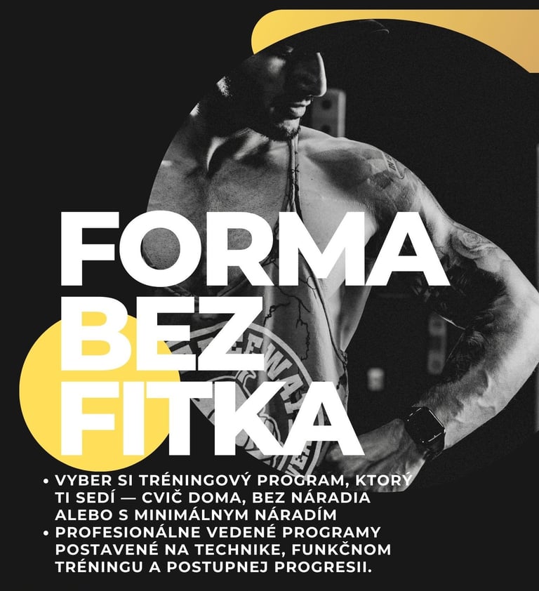 Väčšina programov je postavená tak, aby si ich zvládol doma, s minimálnymi pomôckami — často stačí vlastná váha alebo malá guma. V popise každého programu je napísané presne, čo potrebuješ (ak vôbec niečo).