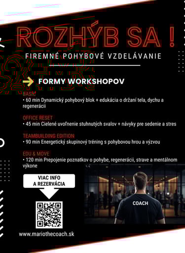 Edu & Move 90–120 min Prepojenie pohybu, regenerácie a stres manažmentu.