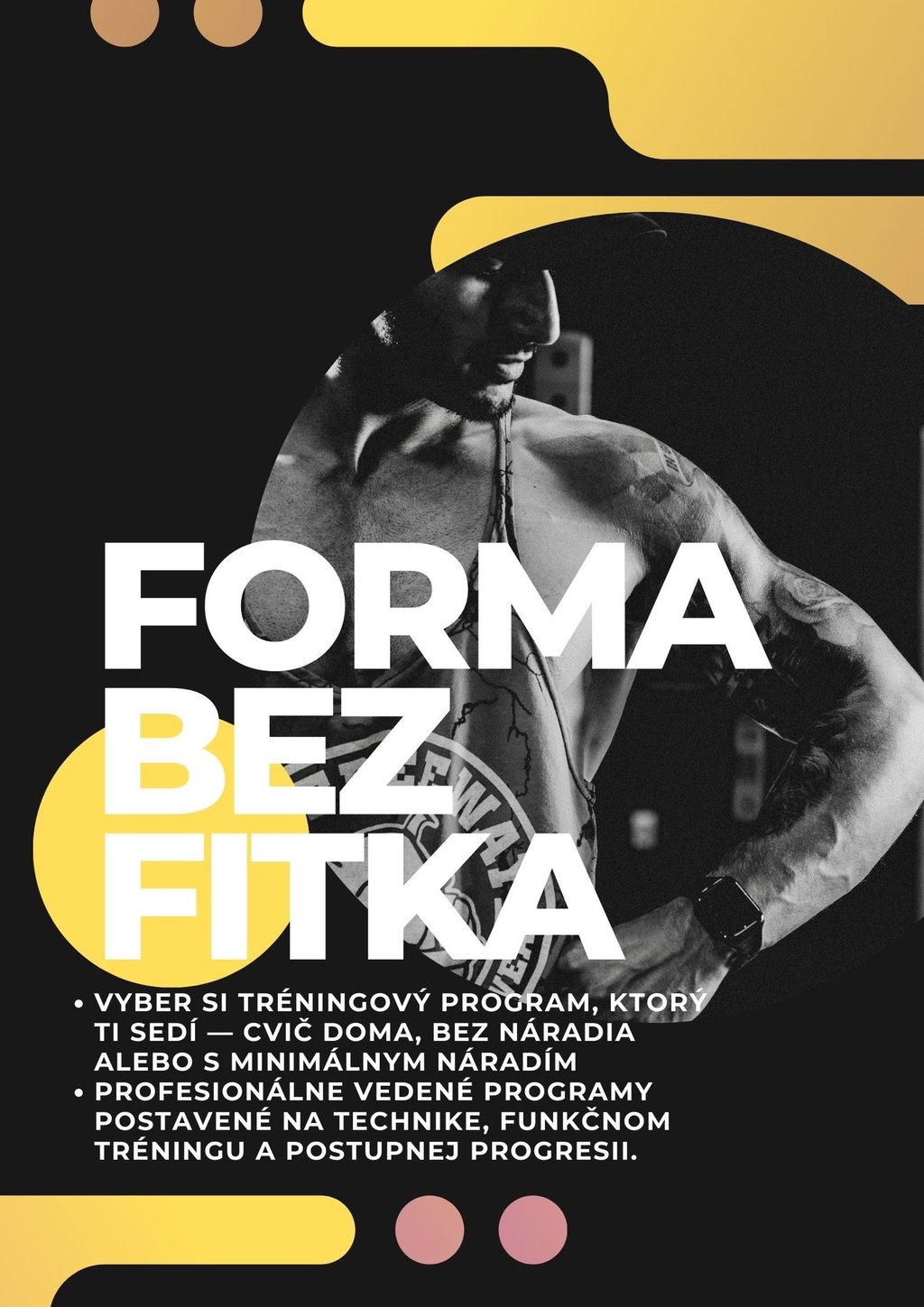 Väčšina programov je postavená tak, aby si ich zvládol doma, s minimálnymi pomôckami — často stačí vlastná váha alebo malá guma. V popise každého programu je napísané presne, čo potrebuješ (ak vôbec niečo).